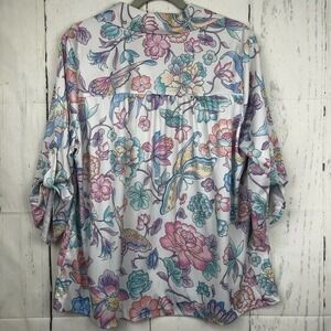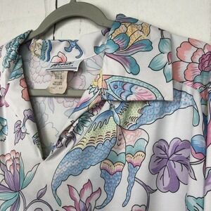 Vintage Teddi Of California Size 2X Butterfly Floral Print Top 3/4 Tab Sleeves