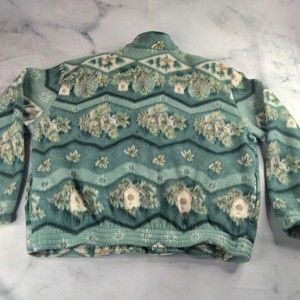 Vintage Teddi Size L Green Floral Jacket sweater full Zipper Pockets