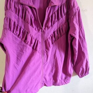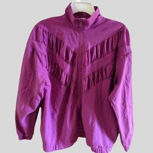 Vintage Teddi Sport Windbreaker Women's Size Medium Purple 80s 90s Zip Jacket Ruffle Retro