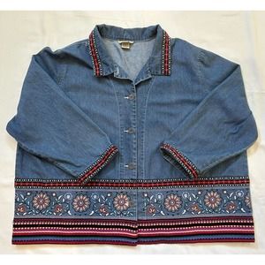 Vintage Teddi Woman Embroidered Denim Shirt Jacket 4x 26WP Button Up Shacket