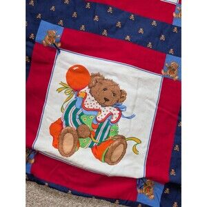 Vintage Teddy Bear Crib Quilt Baby Nursery Decor Country Handmade Throw Blanket