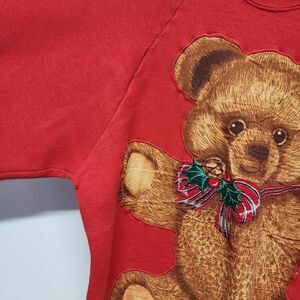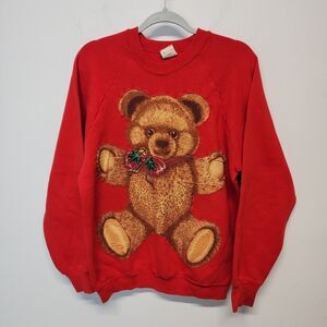 Vintage Teddy Bear Sweatshirt Size L Red Pullover Fruit of Loom 90s Mom Granny