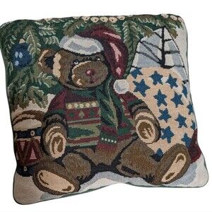 Vintage Teddy Bear Tapestry Accent Pillow seasonal Christmas Holiday home decor