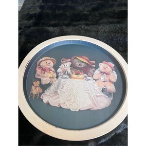 Vintage Teddy Bear Tea Party Round Metal Tin Serving Tray