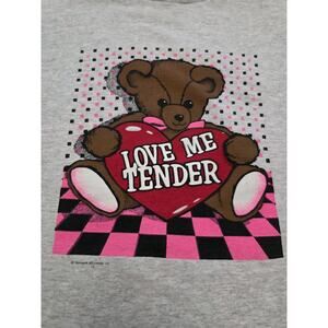 Vintage Teddy Bear Tee Shirt Love Me Tender Heart Elvis 90s Single Stitch XL USA