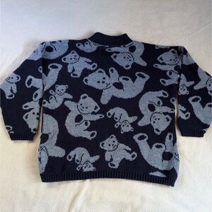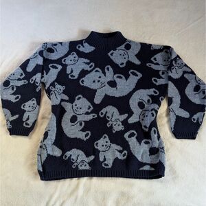 Vintage Teddy Bear Turtleneck Sweater Women's XL/1X Navy Blue All Over Print