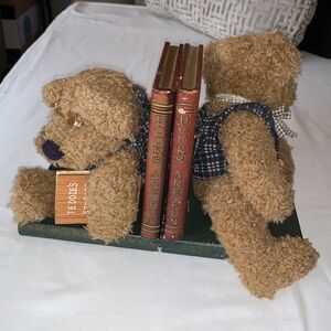 Vintage Teddy Bear Wooden and Plush Bookends .. Adorable