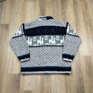 Vintage Tejidos Rumiñahui Sweater Mens Large Gray Wool Aztec Full Zip Knit