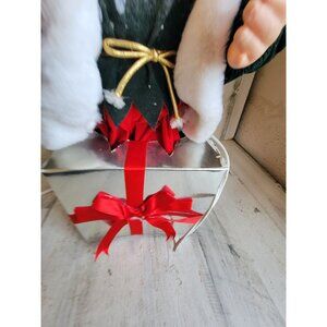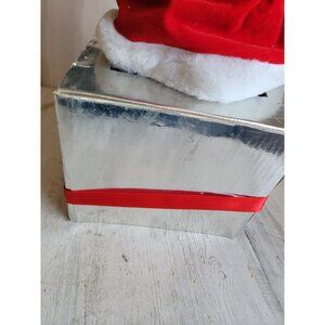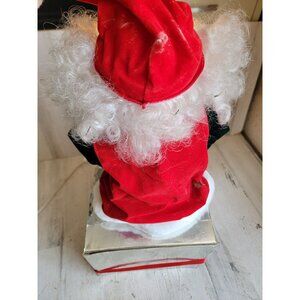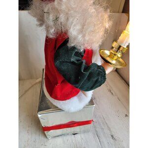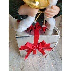 Product has some wrapping paper with tearing on gift box, some discoloring marks on elf, scratches and marks, but otherwise in good condition, product lights up at candle and has movement, no box