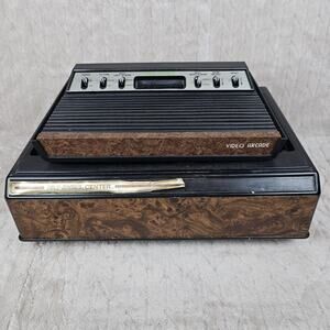 Vintage gaming console from the 70s. Has the games that were sold for the console, plus some other games. 3 different styles of controllers. Has the case where the games and controllers go underneath and the console sits on top. Untested, selling for parts and/or pieces.