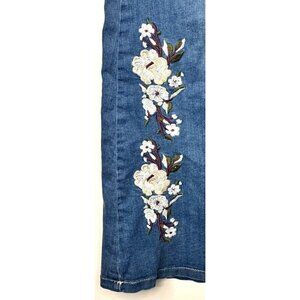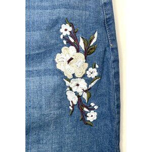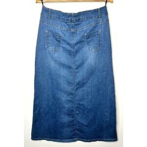 Vintage Telvin Floral Embroidered Denim Skirt Womens 42 Blue Long Pockets