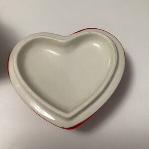 Vintage Temptations Heart Shaped Ramekin Baking Dish Lid Floral Lace Trinket Box