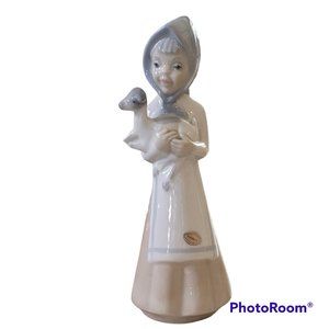 Vintage Tengra Porcelain Figurine Girl with Lamb 1970's- Made in Valencia, Spain.