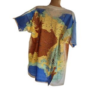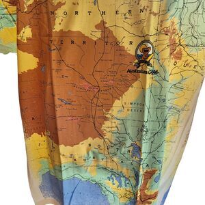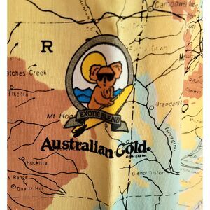 Stand out with this Vintage Tennessee River Gold Men’s XL Promotional T-Shirt, created for Australian Gold Tanning. Made from soft cotton, this short sleeve crew neck tee is printed on both sides for maximum impact. The front features the bold Australian Gold branding and map, while the back showcases another colorful map of Australia, adding unique graphic appeal. Designed in a relaxed XL fit, it’s perfect for casual wear, vintage streetwear styling, or collectors of promotional and advertising apparel. Limited production makes this a rare find for fans of retro graphic tees.