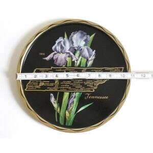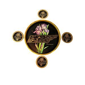 Vintage Tennessee Souvenir Tray and Coasters: Iris & State Map, Black Metal