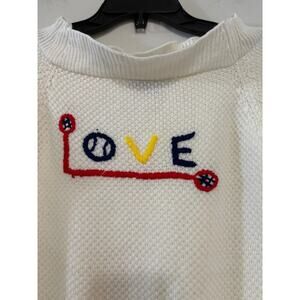 Vintage Tennis Sweater Womens Small Spell Out Embroidered White Rare Unique