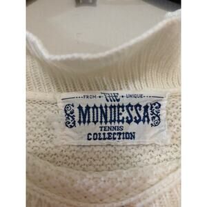 Rare Vintage 1970s Mondessa White Textured Tennis Sweater Embroidered
