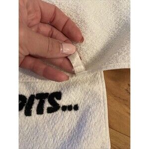 Set of two super cute tennis towels. These are in nice shape. Possibly never used but they have been sitting in a closet for a while. No stains or smells. They measure approximately 15 x 21. One has a tiny bit of frying at the edge. See last picture for details.