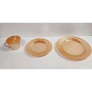 Vintage Termocrisa Peach Lusterware Coffee Cup Mug & Plates (6.5",8.5"). This includes one Coffee Cup one 6.5" plate and one 8.5" plate