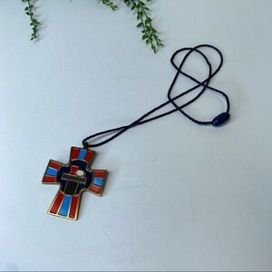 Vintage Terra Sancta Guild Enamel & Metal Eucharist Cross Pendant Necklace