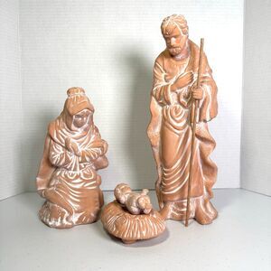 Vintage Terracotta 3 Piece Nativity Set - Mary, Joseph and Baby Jesus in Manger