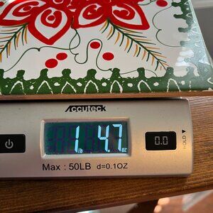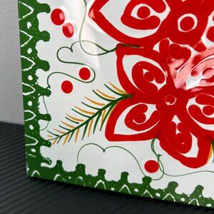 Brightens any space with hand-painted floral design. Durable ceramic crafted in Italy, showcasing a festive green and red color palette.