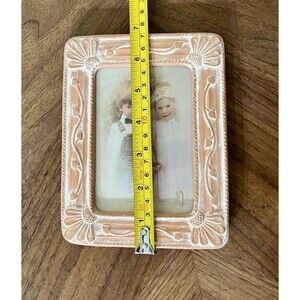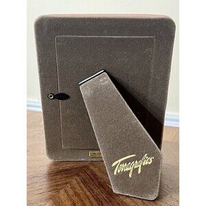The Vintage Terragraphics 1986 Terra Cotta Picture Frame is a handmade ceramic frame with a Mediterranean style finish, featuring a floral pattern in multicolor. This rectangular frame with a viewing angle of 140 degrees can hold a single 3.5 x 5 inch photo and has an easy installation process. The rear-loading design and clear glass make it convenient for displaying your favorite memories in portrait orientation. With its unique design and original stickers, this collectible frame from 1995 is a charming addition to any decor.
