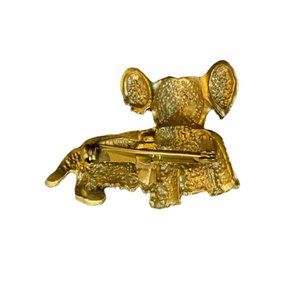 Vintage Terrier Dog Brooch, Long Haired Dog Pin, Rhinestone Collar, Gold Plated,