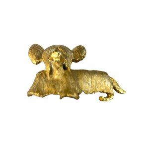 Vintage 1980s Terrier Dog Brooch Long Haired Dog Pin 1.5"