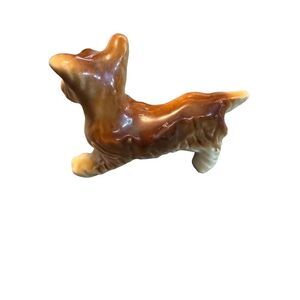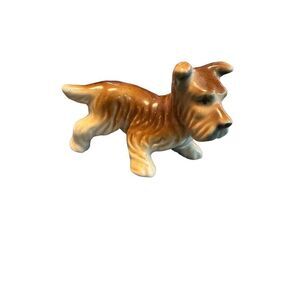 Vintage Terrier Dog Figurine Glazed Porcelain Brown and White