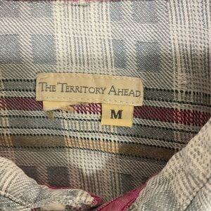 Vintage Territory Ahead Y2K Shirt Mens Med Gray Red Plaid Button Up Cotton Gorp