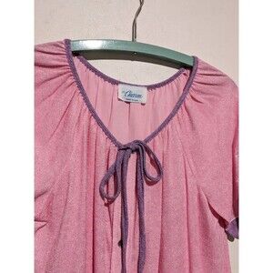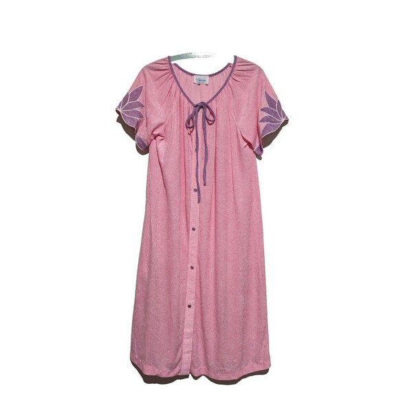 Vintage Terry Housecoat Lounger Robe Snap Front with Tie Neck 70s Pink Purple M