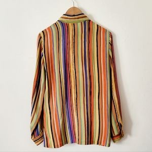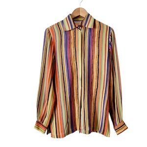 Vintage Tess 100% Silk Multi-colored Striped Long Sleeve Shirt Size S