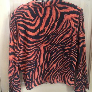 Gently worn, beautiful orange and black animal print silk blouse by Tess. Size Large.