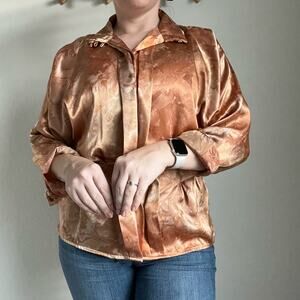 Vintage Tess Orange Satin Fitted Blouse Size 8