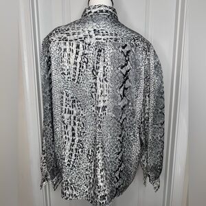 Vintage Tess Reptile Print Asymmetrical Button Down Blouse, Sz 12