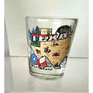 get this vintage, collectible Shot Glas, Texas, Lone Star State, has a Texas map with points of interest details, Texas flag. the glass has a letter "L" and the number 37 in the bottom. Colorful, beautiful. Pre - Owned. Souvenir. Best