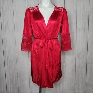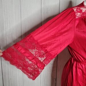 Vintage Texsheen Red Midi Robe with Lace Sleeves, size Medium