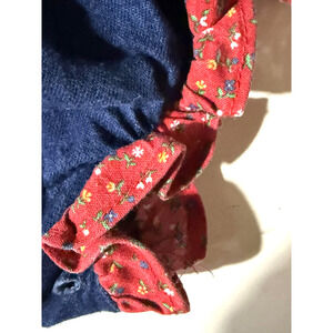 Vintage Texsis Baby Romper Small Denim Floral Ruffle Bloomers Overalls 90s