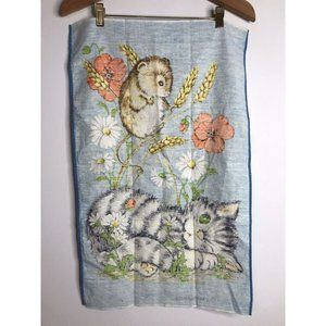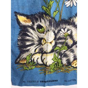 Vintage Textile Impressions Cotton Linen Tea Towel Cat Kitten Mouse Cute Floral