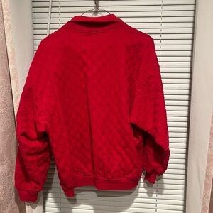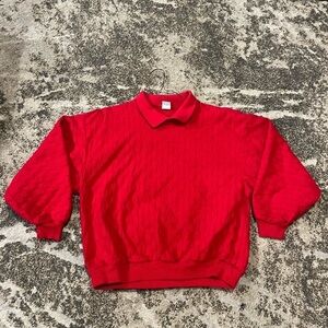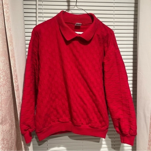 Vintage Textured Basketweave Long Sleeve Collar Shirt Red Size Small Cotton