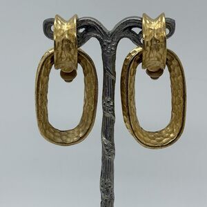 Vintage Textured Gold Tone Givenchy Logo Runway Statement Earrings Oval Hoops