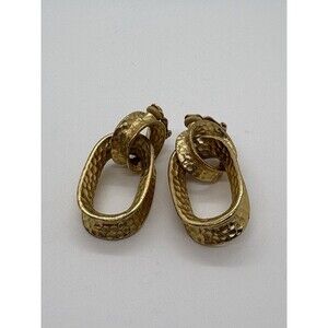 These Vintage Textured Gold Tone Givenchy Logo Runway Statement Earrings are a luxurious and statement-making accessory for women. The oval hoop design features a textured gold tone finish, with the iconic Givenchy logo subtly incorporated into the design. These clip-on earrings are signed by the brand, adding to their authenticity and appeal. Perfect for adding a touch of high-end glamour to any outfit, these earrings are a timeless piece of vintage jewelry that is sure to make a statement.