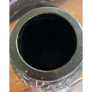 Vintage Textured Japanese Tokonabe Black Vase Bird and Flowers