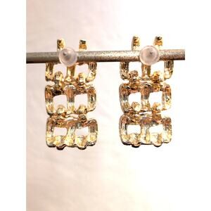 Vintage Textured Panther Link Articulated Gold Tone Pierced Earrings. Pre-owned, these earrings are in excellent condition.