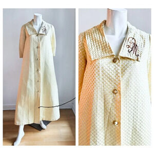 Vintage Textured Pastel PInk a line Button Down House Robe M