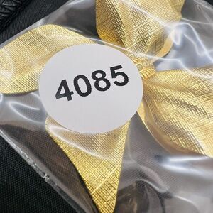 Vintage Textured Satin Bow Ribbon Brooch Crystal Accent Large Gold Matte 4085