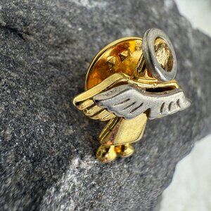 Vintage Textured Silver & Gold Tone Halo Angel Lapel Pin