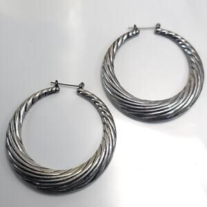 Vintage Textured Silver Hoop Earrings, Bold Large Statement Hoops for Women