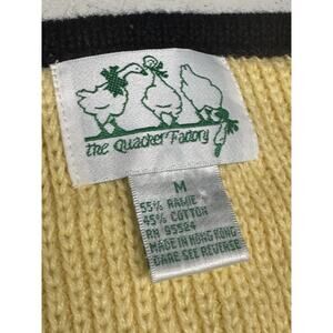 The Vintage Quacker Factory Yellow Button Up Sweater Vest is a unique and stylish piece perfect for casual occasions. Made from a knit fabric blend of ramie and cotton, this sleeveless vest features a V-neckline and button accents with embroidered bumblebee and floral designs. With a bright yellow color and a size M, this vest is a whimsical addition to any wardrobe, suitable for all seasons. Hand wash only to maintain its quality, this vintage sweater from Hong Kong is sure to stand out with its charming design and nostalgic appeal.